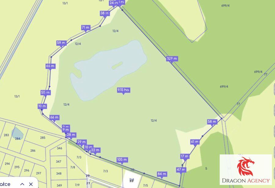 PRYWATNY PARK I JEZIORO (WSPÓLNY ATUT): W centralnej części kompleksu znajduje się jezioro oraz las. To Twoja najmocniejsza karta sprzedażowa - każda wydzielona działka zyskuje na prestiżu i cenie dzięki bezpośredniemu sąsiedztwu prywatnej, zamkniętej strefy rekreacyjnej dla przyszłych mieszkańców.